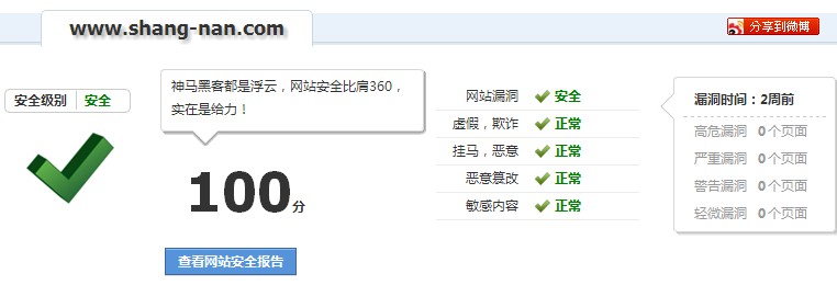 三、網(wǎng)站木馬檢測方法網(wǎng)站木馬檢測方法我們推薦使用360網(wǎng)站安全檢測工具,在網(wǎng)上搜索下“360網(wǎng)站安全檢測工具”,打開網(wǎng)站,輸入您的網(wǎng)址就可以檢測了,方法非常的簡單、易用,不需要專業(yè)人士的指導(dǎo)就可以檢測出網(wǎng)站的健康狀況。檢測分?jǐn)?shù)一定要在85分以上才算可以,我們的網(wǎng)站檢測分?jǐn)?shù)都是100分。