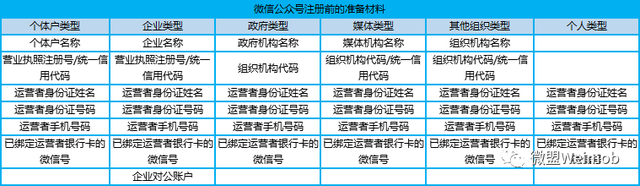 2、微信公眾號(hào)創(chuàng)建前的準(zhǔn)備以下是申請(qǐng)微信公眾平臺(tái)所需的資料詳細(xì)列表,大家可以按照自己需求提前準(zhǔn)備