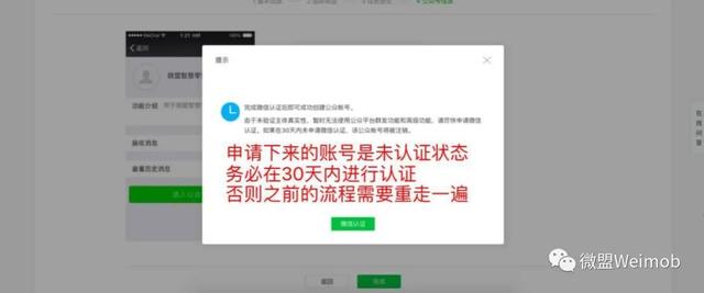 系統(tǒng)認(rèn)證操作提醒及注意事項(xiàng) 到這一步服務(wù)號(hào)的申請(qǐng)就完成了,接著是服務(wù)號(hào)的認(rèn)證